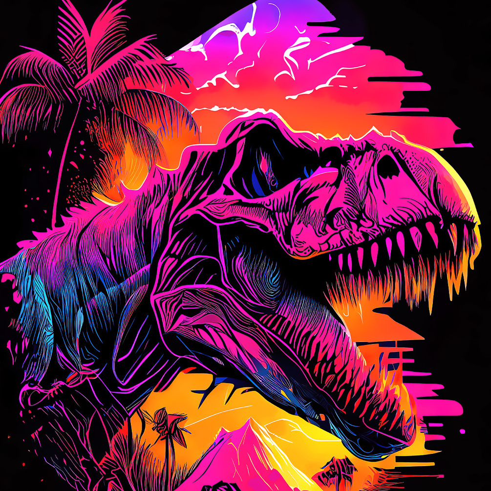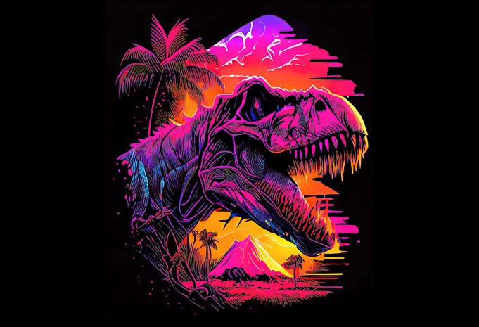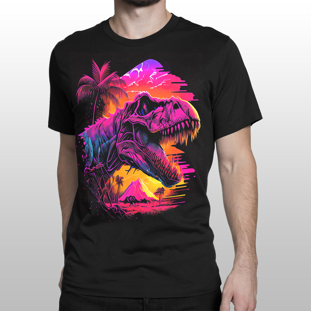 - Dinosaurs T-Rex Synthwave_DTG_and_DTF_printing